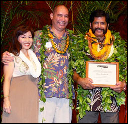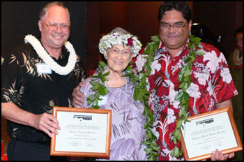 and Kihei Nahale-a accepting award for inductee Albert Nahale-a, HMHF PResident